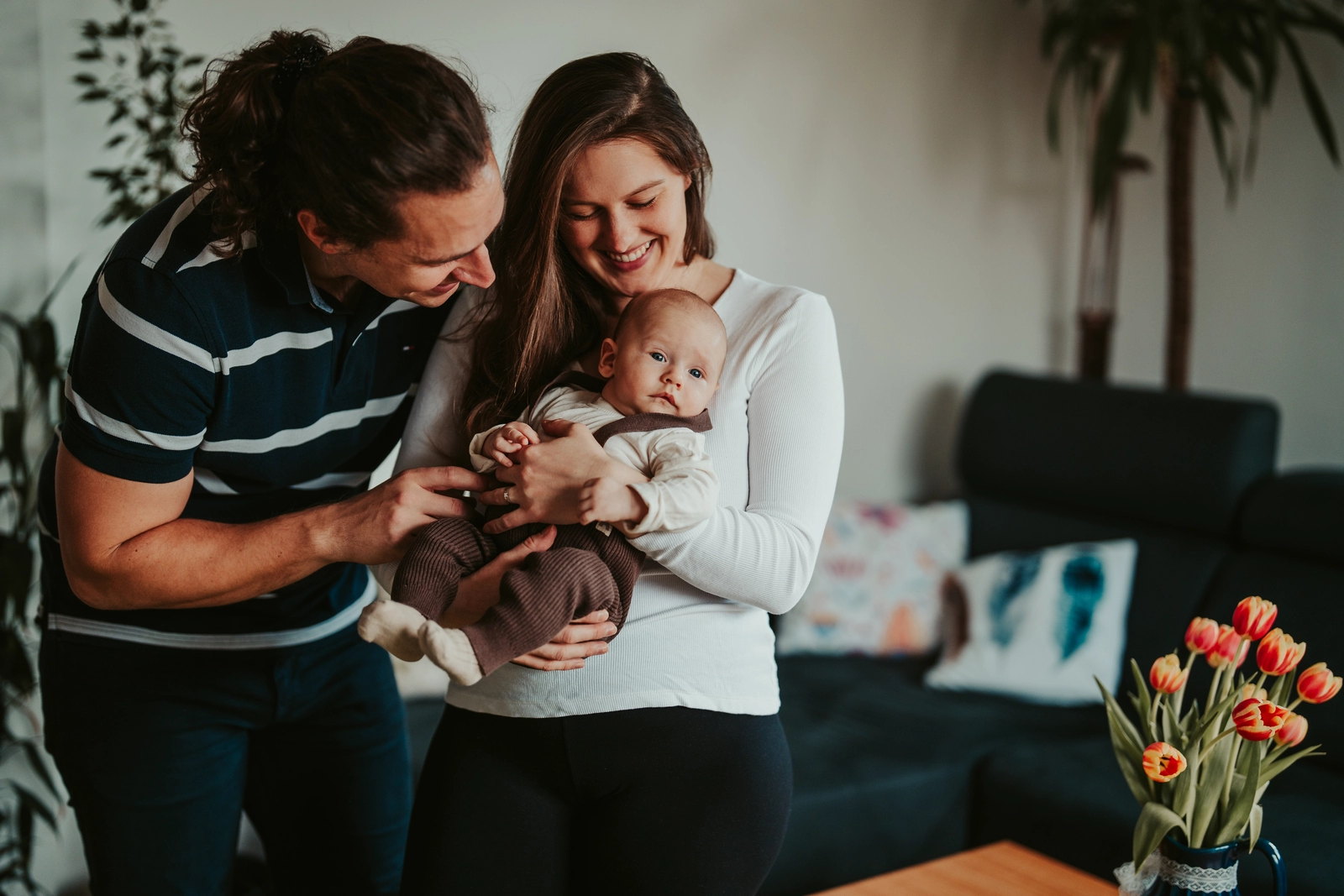 Newborn focení doma je o přirozenosti a především o vás, proto chceme společně podpořit, aby byl na fotografiích důraz kladený na vás jako rodinu a pozornost nám nikam neutíkala. Během focení můžete miminko krmit, kolébat a mazlit tak, jak jste zvyklí a ke všem těmto běžným aktivitám každodenního dne vás ráda a často poňoukám. Chtěla bych, abyste se cítili přirozeně a pohodlně.